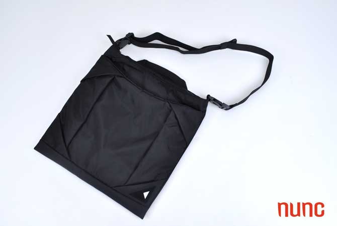 2wayショルダーバック。薄マチながら2層式で身の回りの必需品を快適に持ち運べます。ストレスがかかりにくい回転式のバックルを使用、背面上部には小物の収納に便利なオープンポケットがあります。同程度のスペックの素材と比べ軽量な中空ナイロン840dを使用しているため、軽量性に優れています。