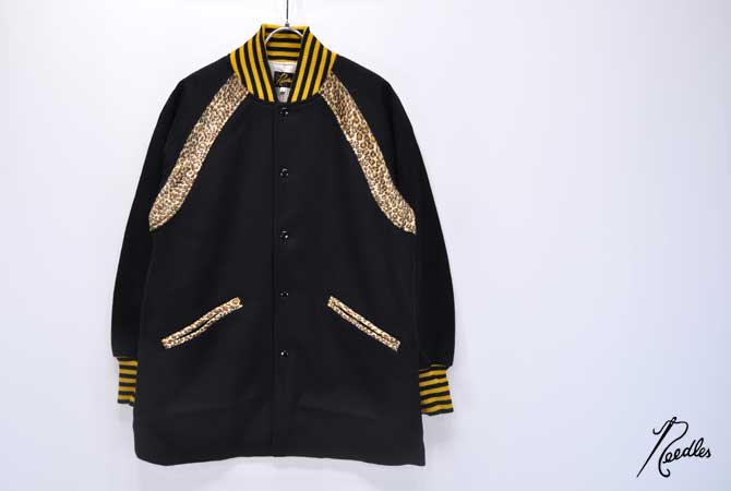 サーコートタイプのメルトンジャケット。 ラグラン、ポケット部分のレオパード柄や襟、袖部分の配色が目をひくアイテムです。個性的でニードルズらしい仕上がりの一着です。